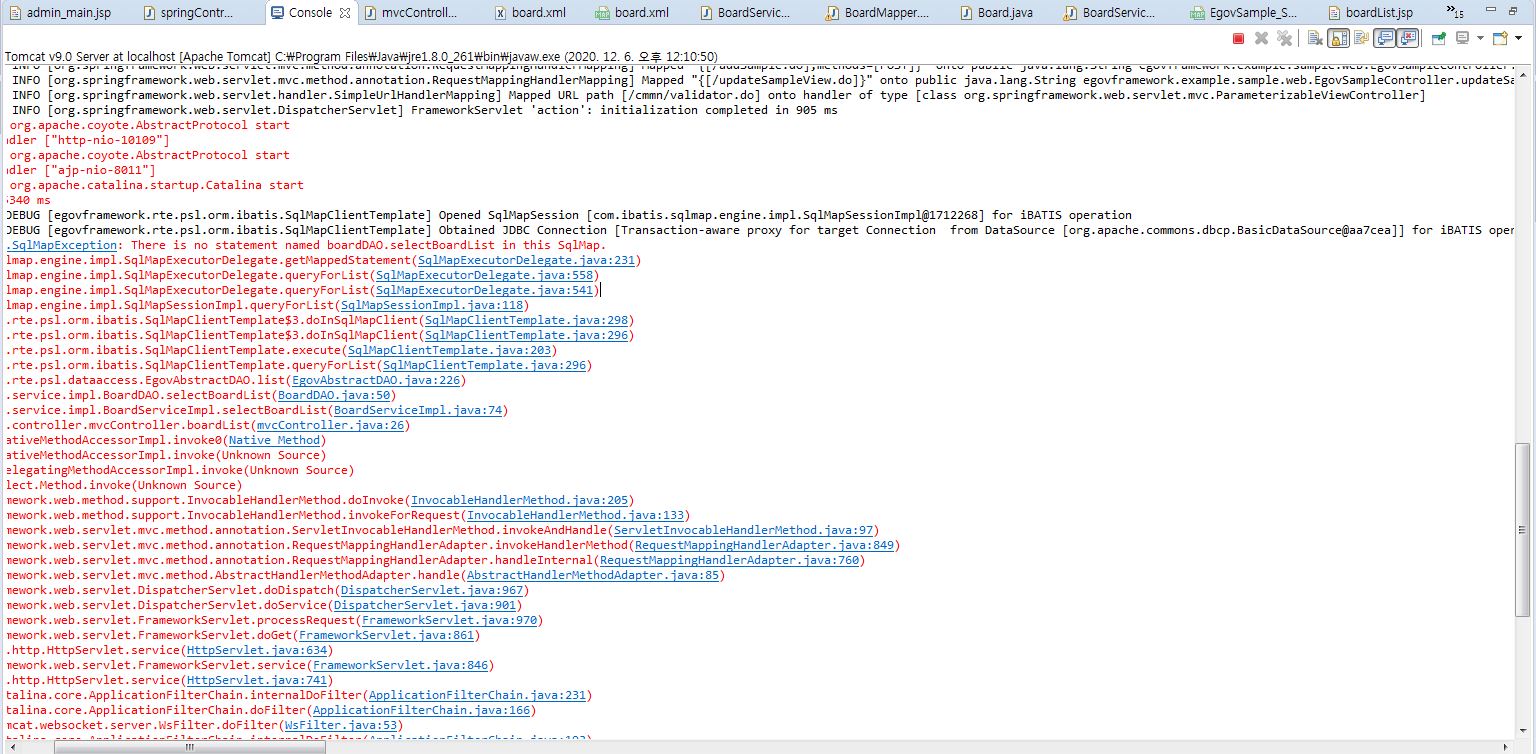 일단 이 오류가 나면 전자정부프레임워크 사용중인 프로젝트의 ibatis(sqlMap) 연동이 오류나는 것으로